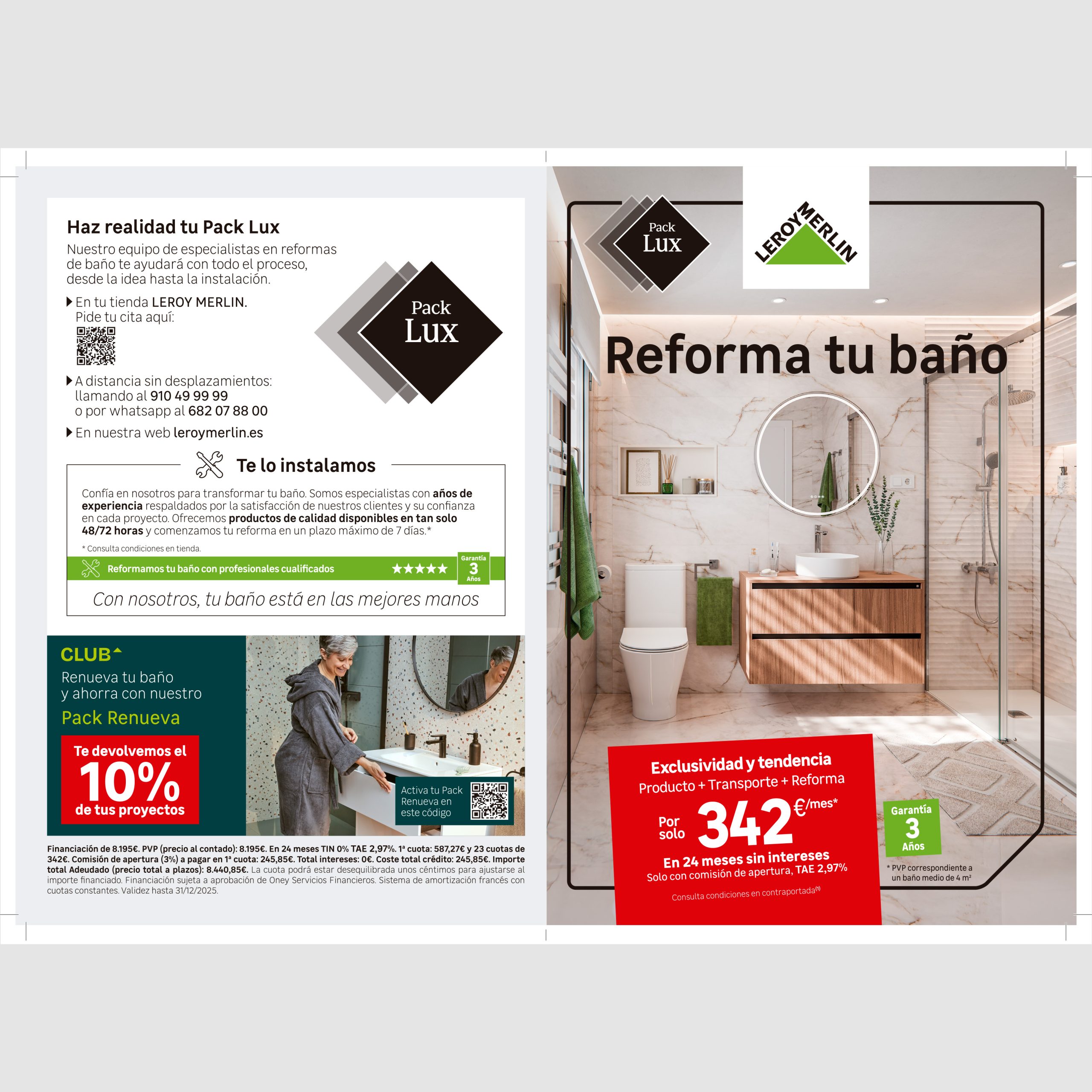 Díptico Reforma tu baño Packs (Start, Quality o Lux / Estándar, Óptimo o Plus)